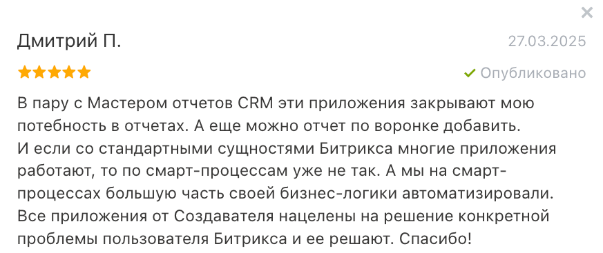 Подчернем: приложение покажет все смарт-процессы на портале, но для отчетов со связанными сущностями CRM нужно учитывать ваши настройки.